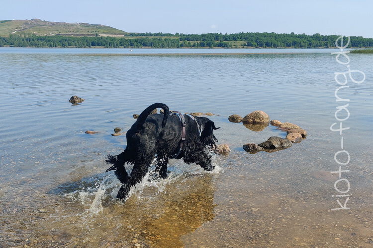 Mit den Jack Russel Damen sind wir am See und Kio geht für Malu sogar kurz ins Wasser..