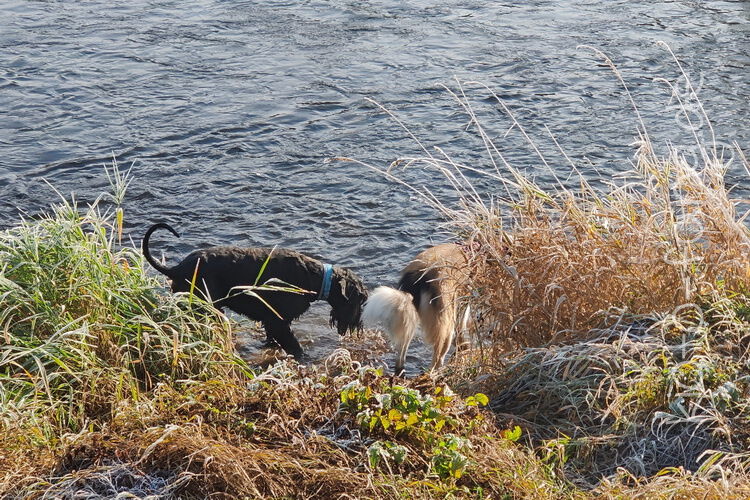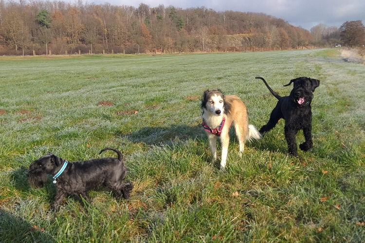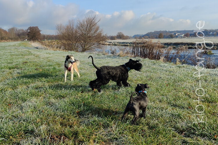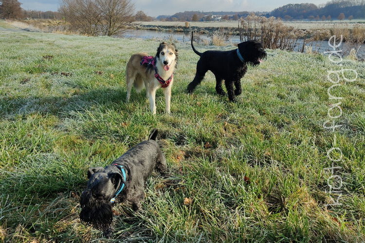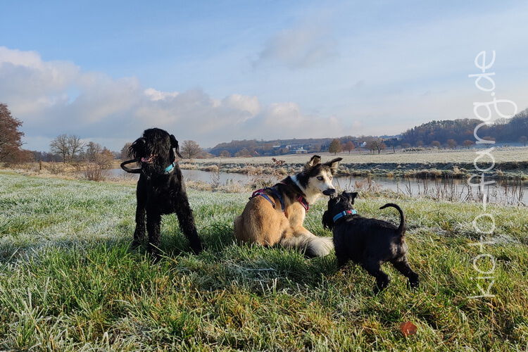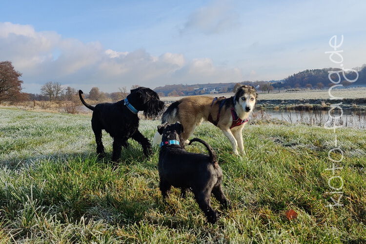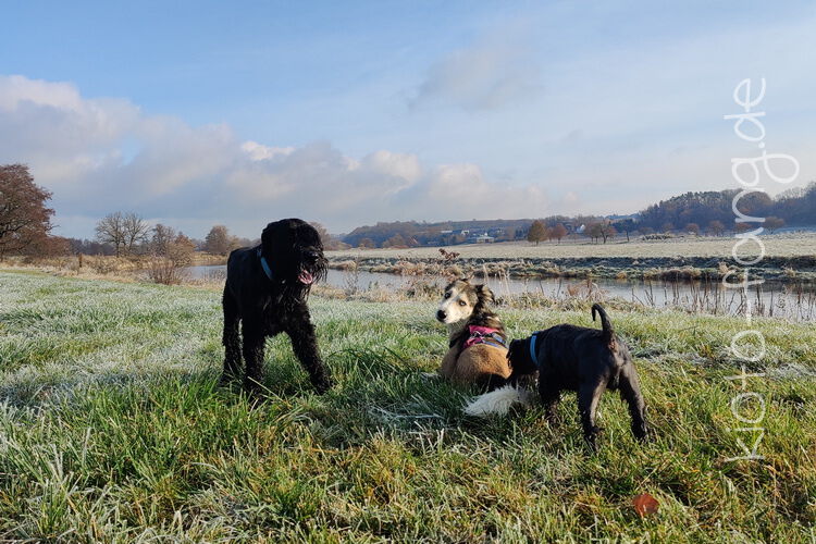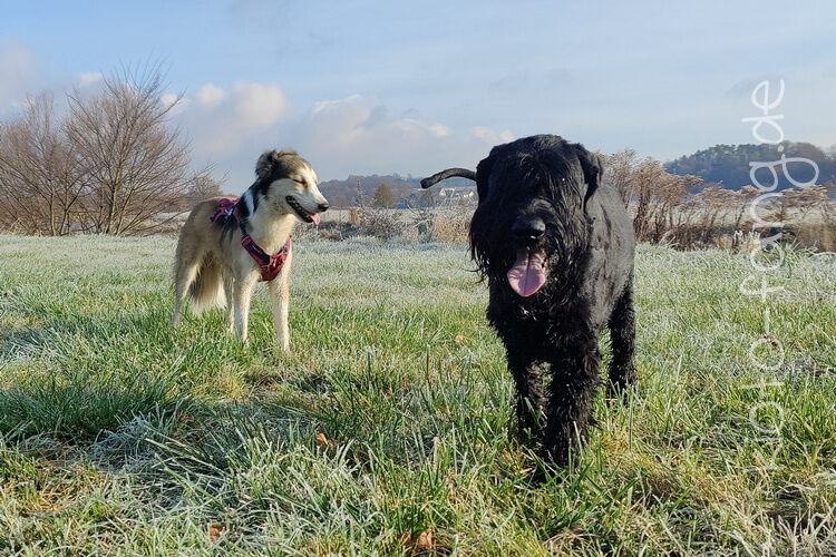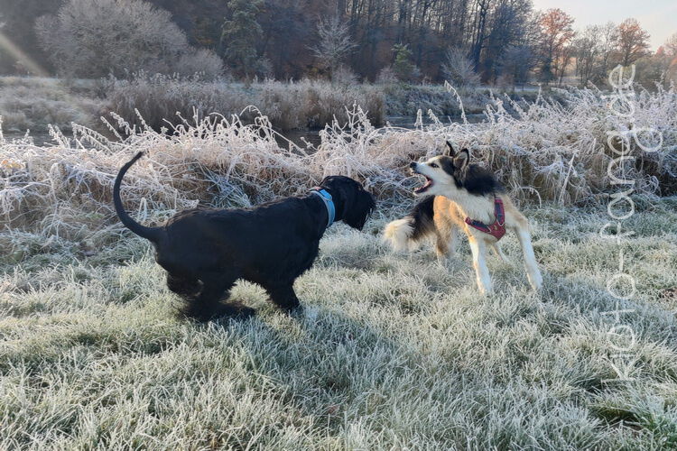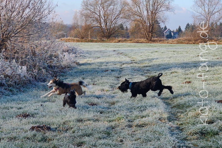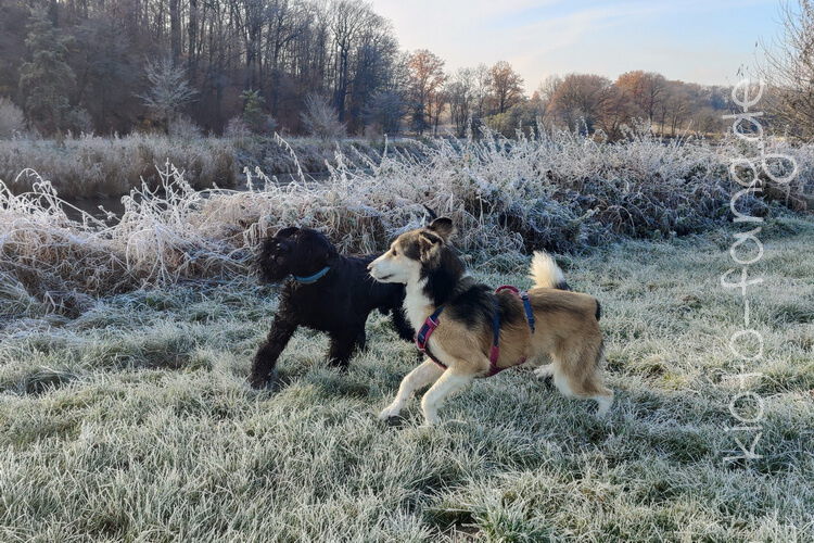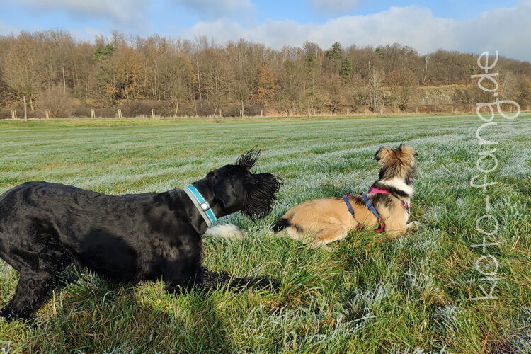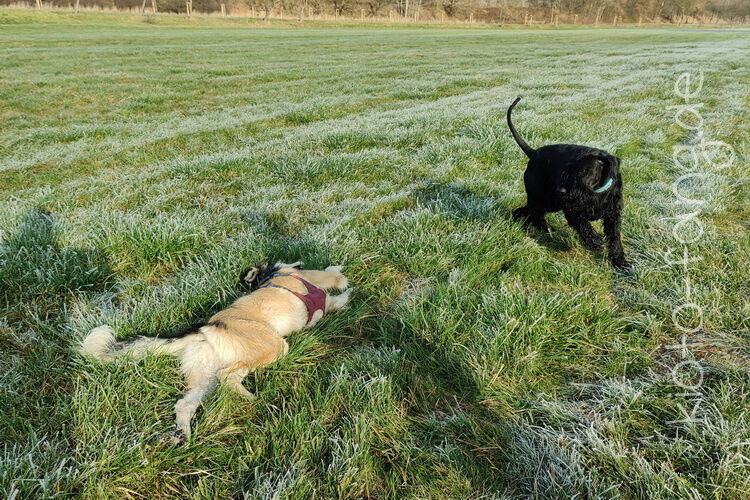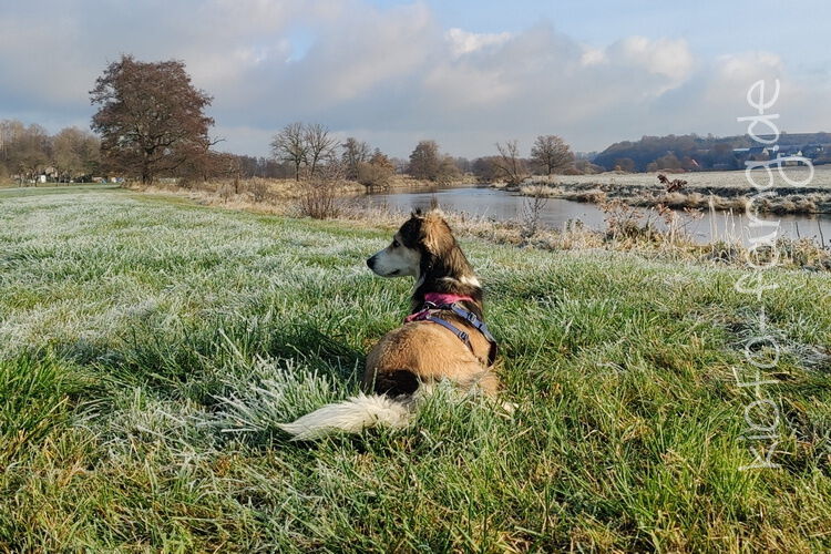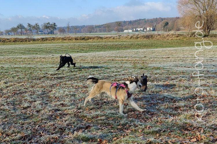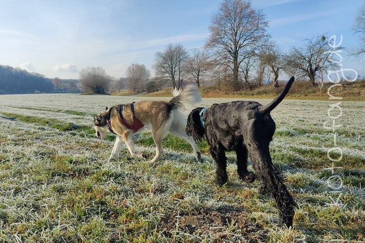 Nach der ersten richtig frostigen Nacht machen wir einen Muldenspaziergang mit Katara ...