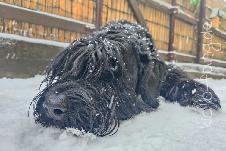 Es fällt noch mehr Schnee und für Kio wird es schwierig nicht komplett im Schnee zu versinken...