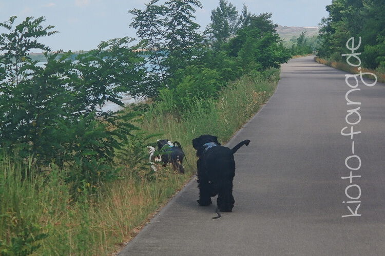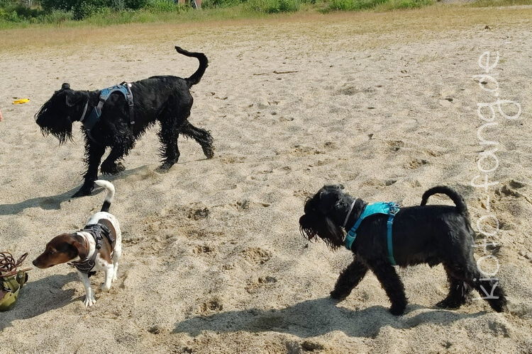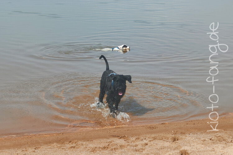 Mit den Jack Russel Damen sind wir am See und Kio geht für Malu sogar kurz ins Wasser..