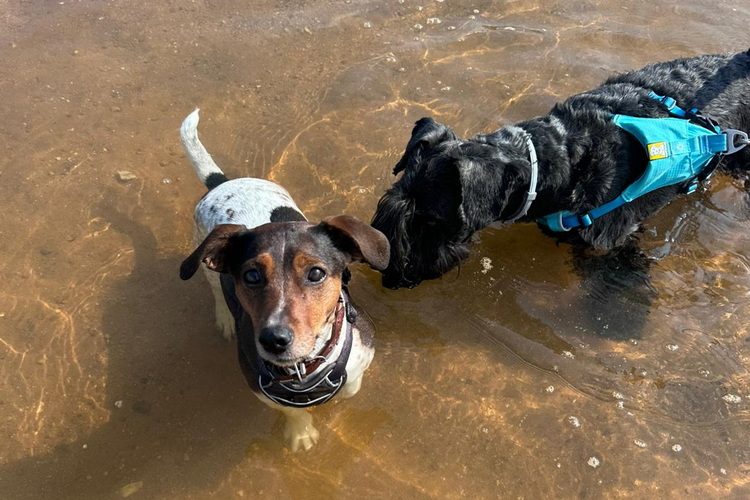 Mit den Jack Russel Damen sind wir am See und Kio geht für Malu sogar kurz ins Wasser....