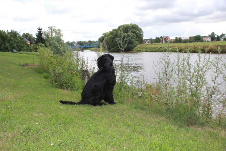 Duke genießt die Aussicht am Ufer...