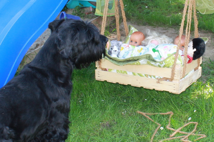 Duke ist erstaunt über die Puppenkinder in der Puppenschaukel...