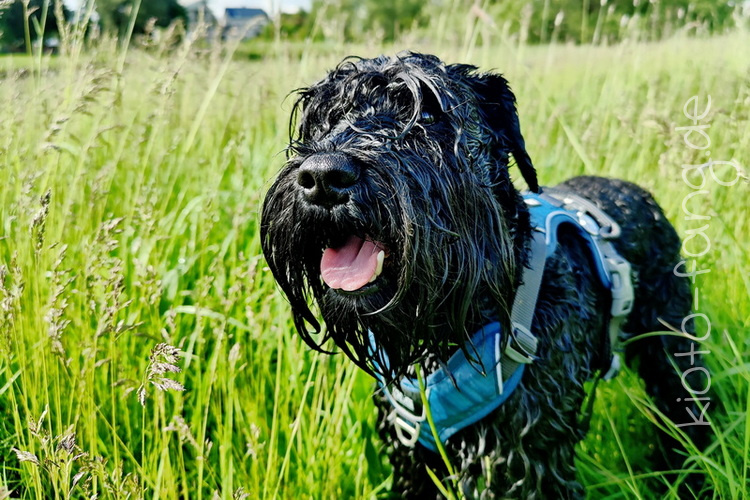 Kio ist nie schlecht gelaunt und steht morgens schon mit einem "Lächeln" auf. Er ist sehr sensibel und unheimlich gelehrig.