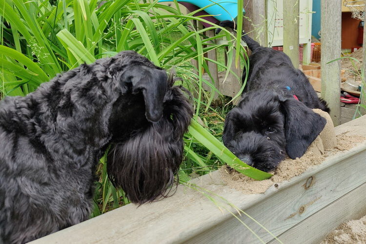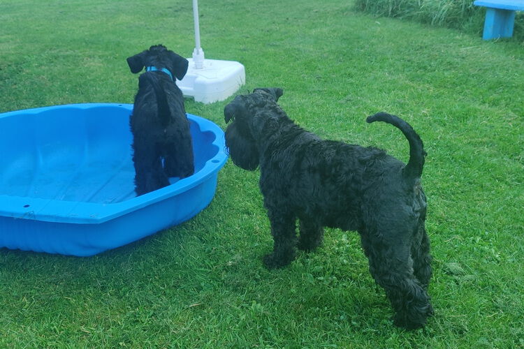 Es ist ganz schöne heiss und die Beiden freuen sich über etwas Abkühlung in der Bademuschel.