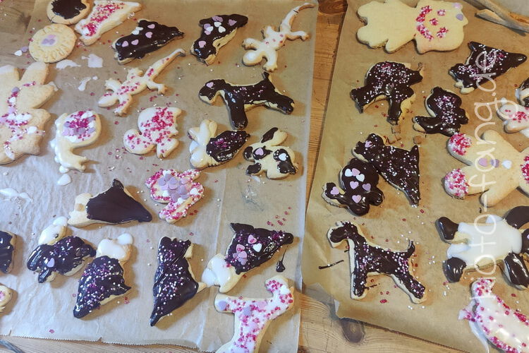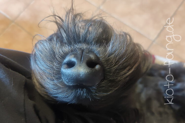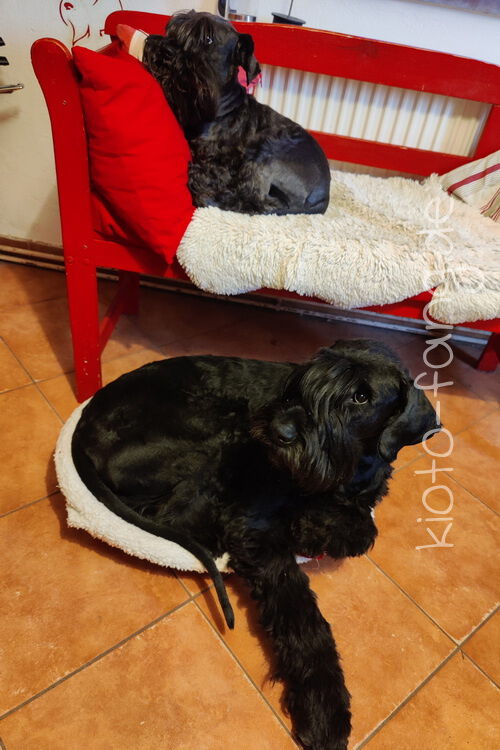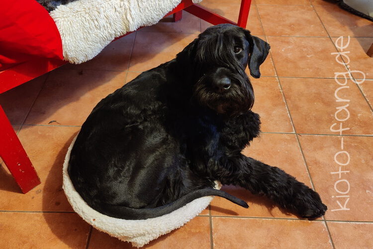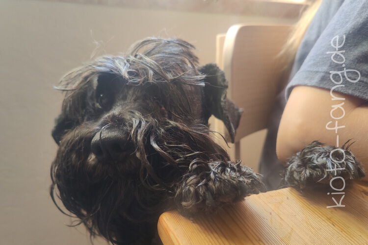 Warum nicht schon im September ein paar Plätzchen backen.... Kio schaut über die Tischkante und Fang liegt in Kio's Körbchen. Er hält sich für kleiner als er ist.
