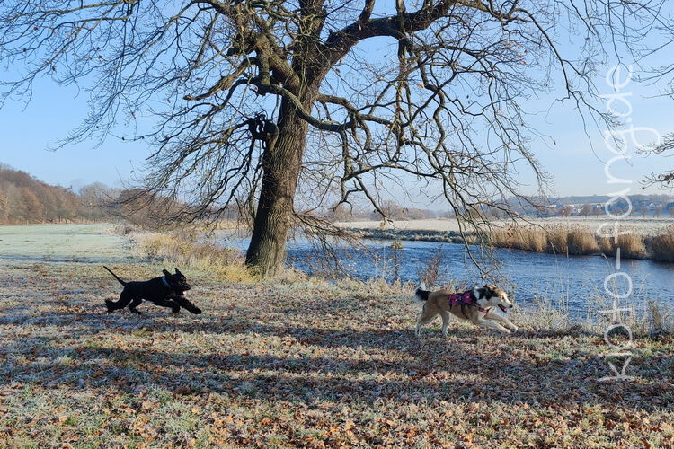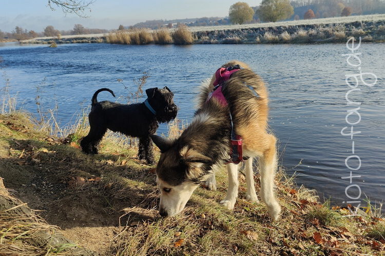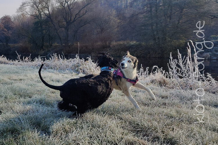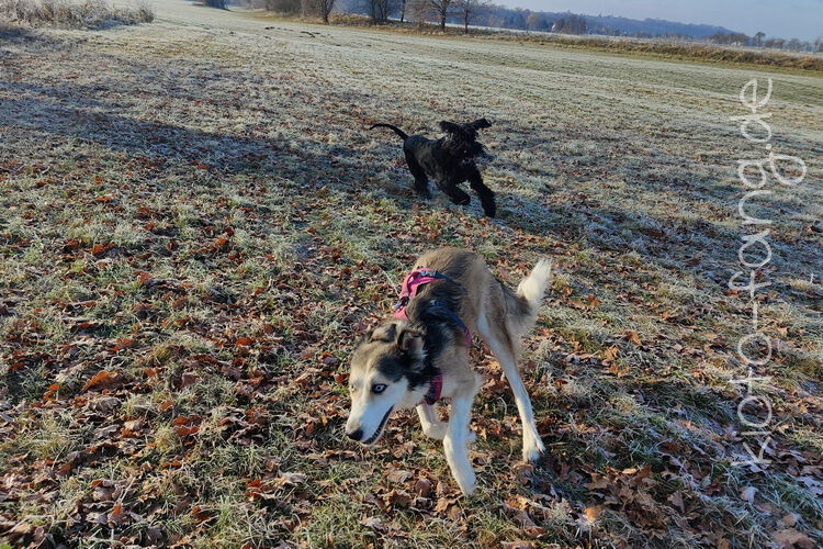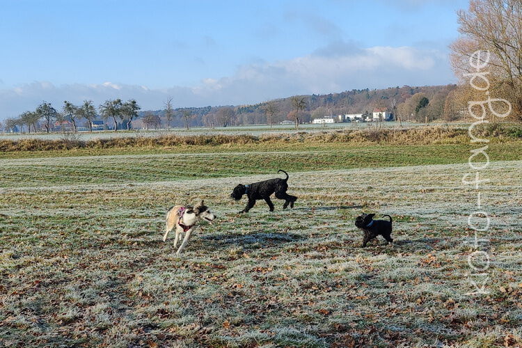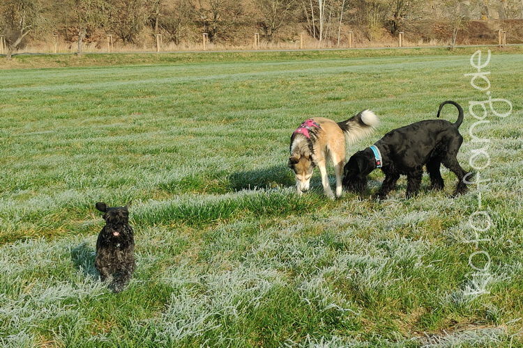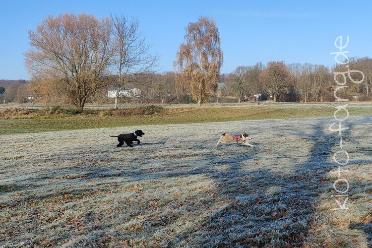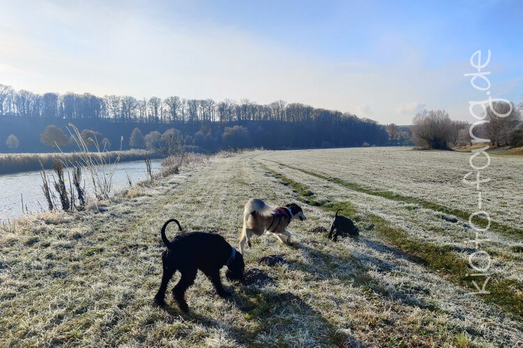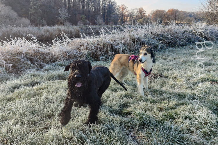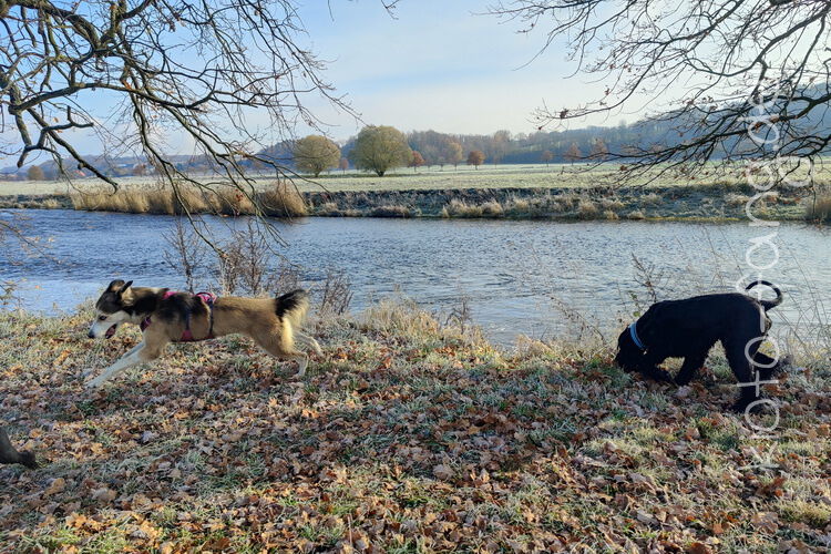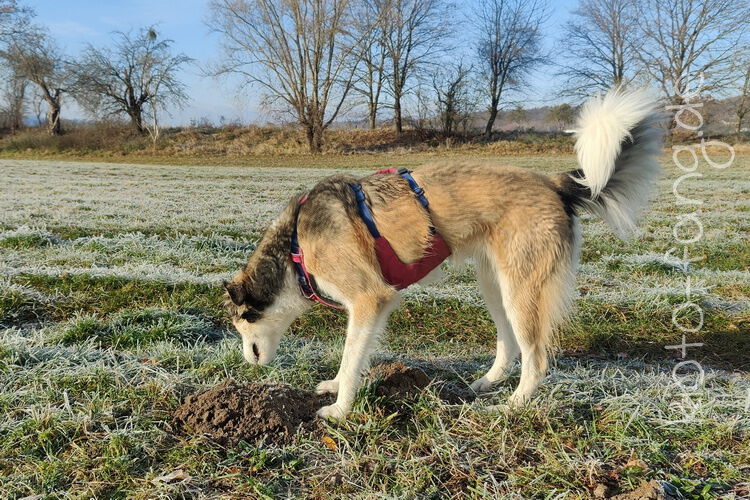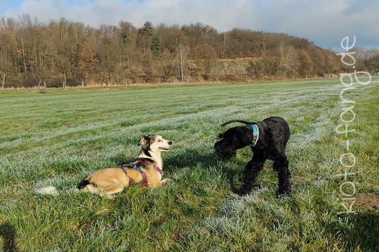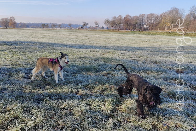Nach der ersten richtig frostigen Nacht machen wir einen Muldenspaziergang mit Katara ...