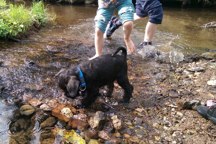 Nasse Pfoten am Bach